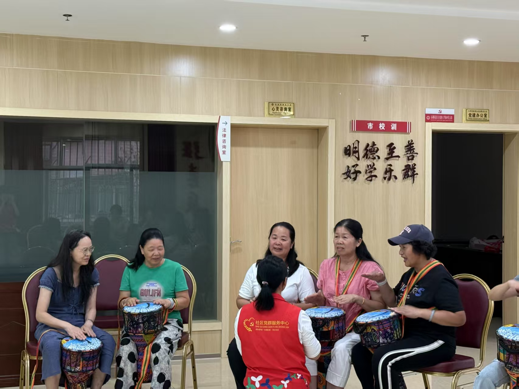 目前,非洲鼓小组活动已完成一半内容,后面的课程将聚焦曲目熟练度提升与手势舞协作训练。后续,布心社区将持续以“百千万工程”为指引,通过此类文化活动搭建居民互动平台,让回迁居民在文化滋养中感受新社区的温暖,让“老有所学、老有所乐”的美好愿景在鼓点声中落地生根。