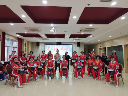 演出落幕,长者组员们纷纷与授课教师、同伴并肩合影,用镜头定格这段充满鼓乐与欢笑的美好时光。不少人还主动相约,言语间满是期待:“以后咱们自己买非洲鼓,接着一起练!社区要是有活动,咱们还组队参加!”