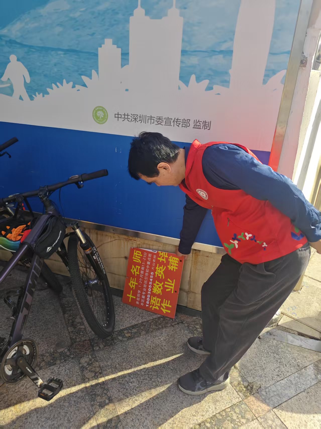 罗湖家园网讯:2025年12月13日布心社区常态化开展社区环境巡查,主要对辖区内未按规范停放的自行车、电动车进行归位,同时对沿街商铺的广告牌逐一检查、规整摆放,让社区公共空间瞬时变得整齐有序。