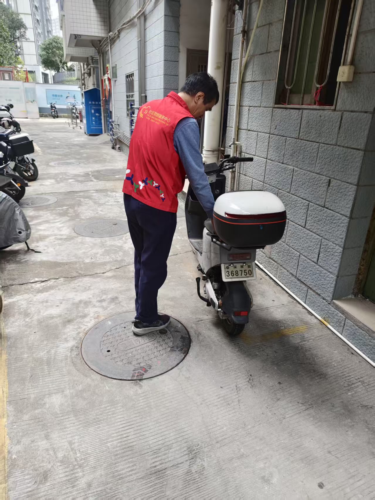 罗湖家园网讯:2025年12月11日,布心社区工作人员对社区内没有停放在黄线内的电动车进行摆放,并将辖区店铺外的物品整齐的摆放在指定的位置。