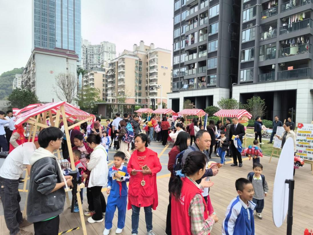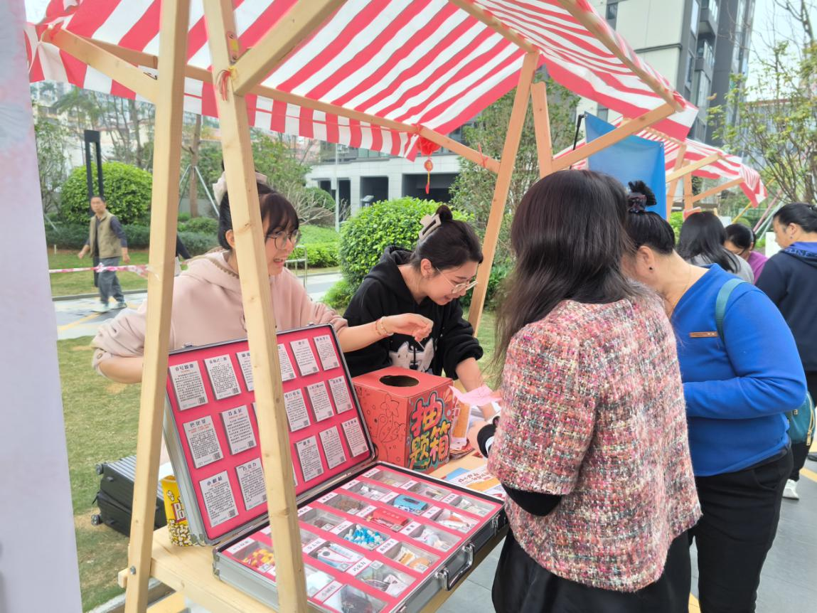 现场设有公益宣传区、趣味游戏区及美食分享区,居民们手持集章卡,在各区域自由穿梭、畅快体验。