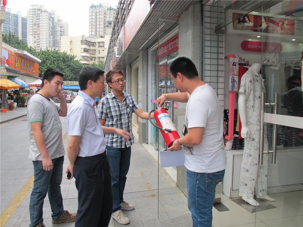街道领导钟主任巡查社区门店消防器材