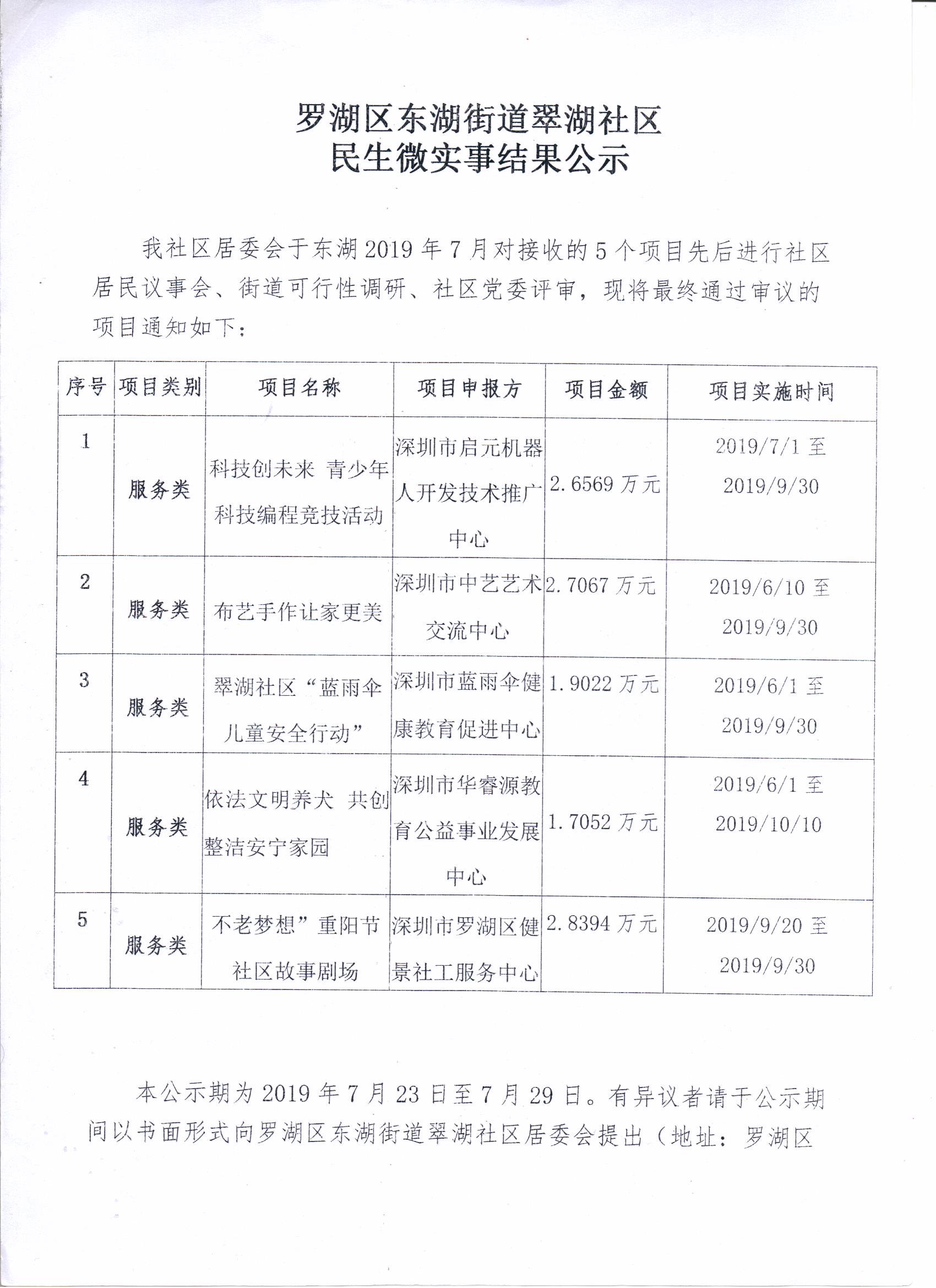 罗湖区东湖街道翠湖社区民生微实事结果公示