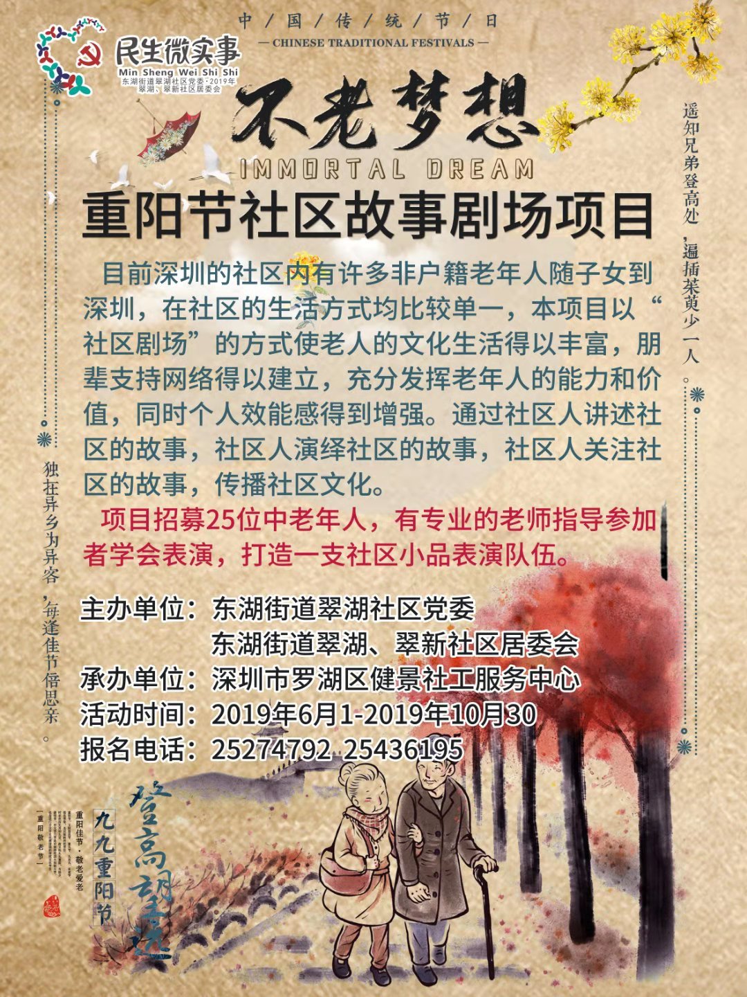 【活动通知】东湖街道翠湖社区“不老梦想”重阳节社区故事剧场活动