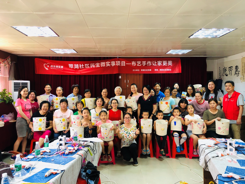 2019年9月22日下午15:00-17:00,在东湖街道翠湖社区工作站五楼党群服务中心开展了民生微实事项目《布艺手作让家更美》第三场“布绳艺术储物篮“活动。活动中老师介绍了布绳艺术储物篮的基本制作方法,带领大家一起制作了一个个精美而独特的布绳储物篮。这次的布艺手作活动更像一个魔法艺术变身活动,平日里我们家里许多废弃的盒子,例如月饼盒,饼干盒,鞋盒等,用艺术化的形式装饰后,立刻有了魔法般的变身,变成了即漂亮又实用的储物盒。都说巧手能让生活变得更美好,艺术本身并不像我们想象的那样,高不可攀,它跟我们的生活息息相关,通过本次活动大家深刻的体会到了这一点。通过双手制作各种美好物件,以此来装扮我们的生活,让我们的生活变得越来越美。