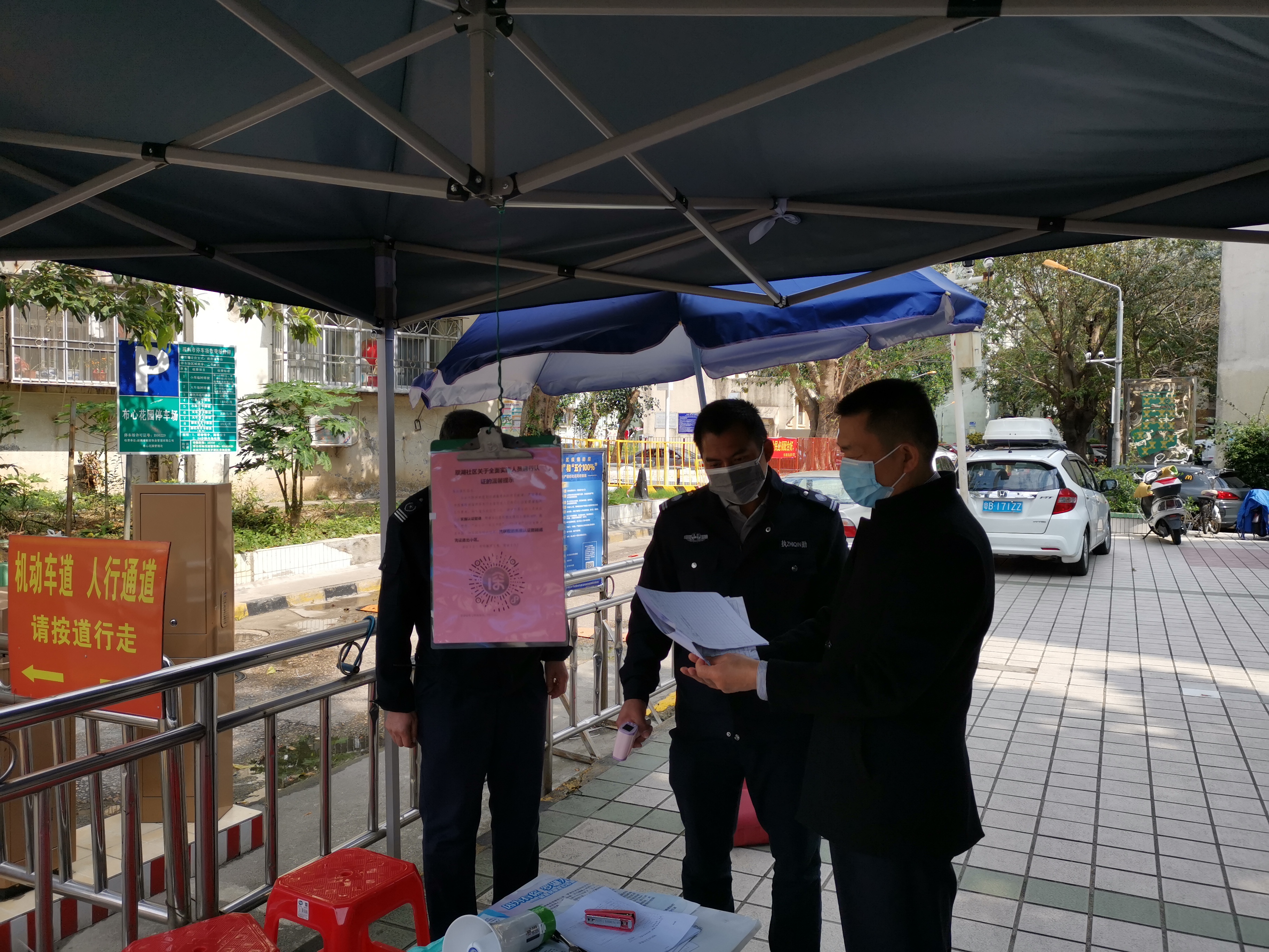 翠湖社区第一书记检查小区出入口人员进出登记情况
