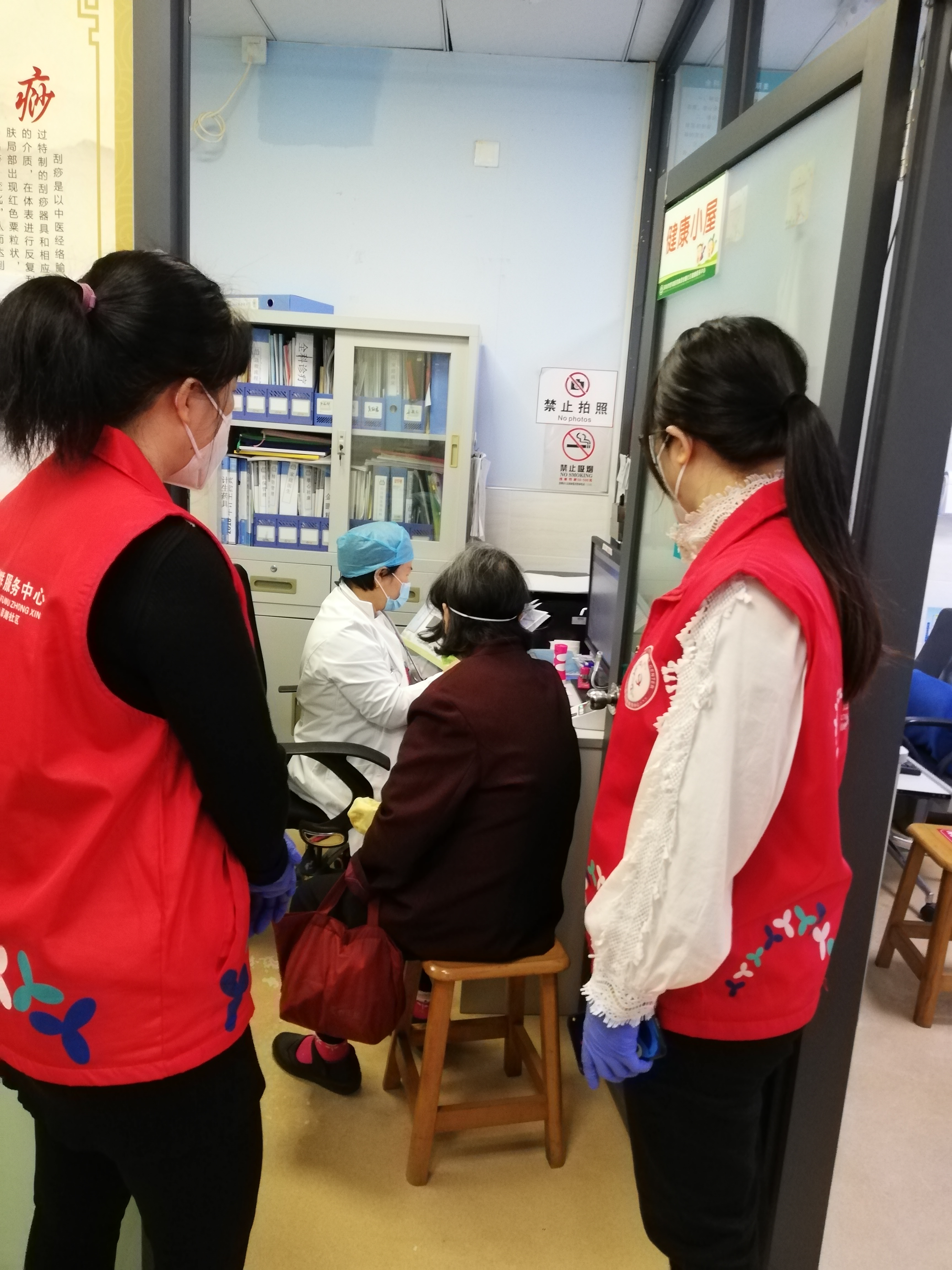 社区工作人员陪同独居长者问诊