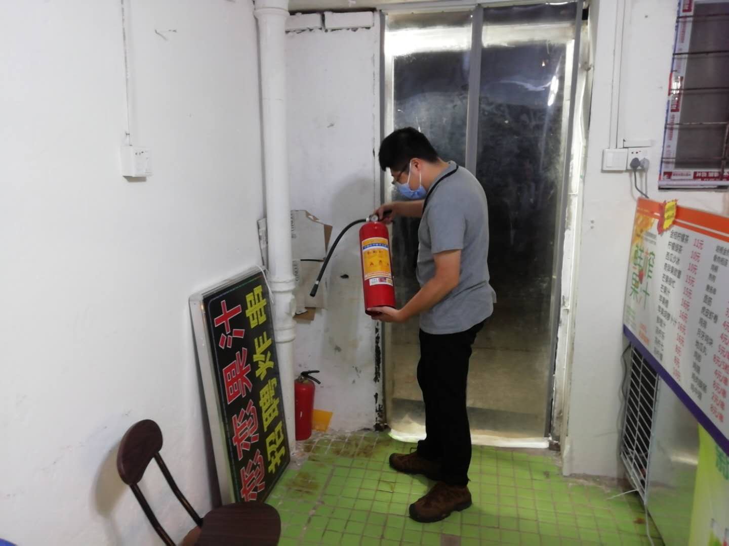 翠湖社区安全专干夜查门店消防安全