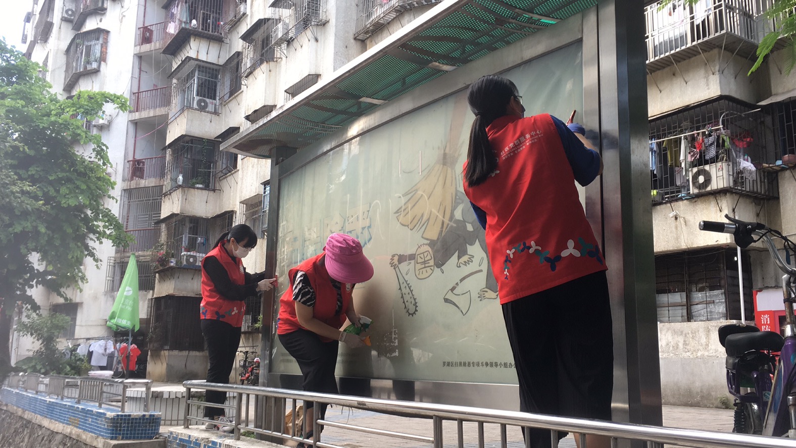 社区志愿者清理乱张贴小广告