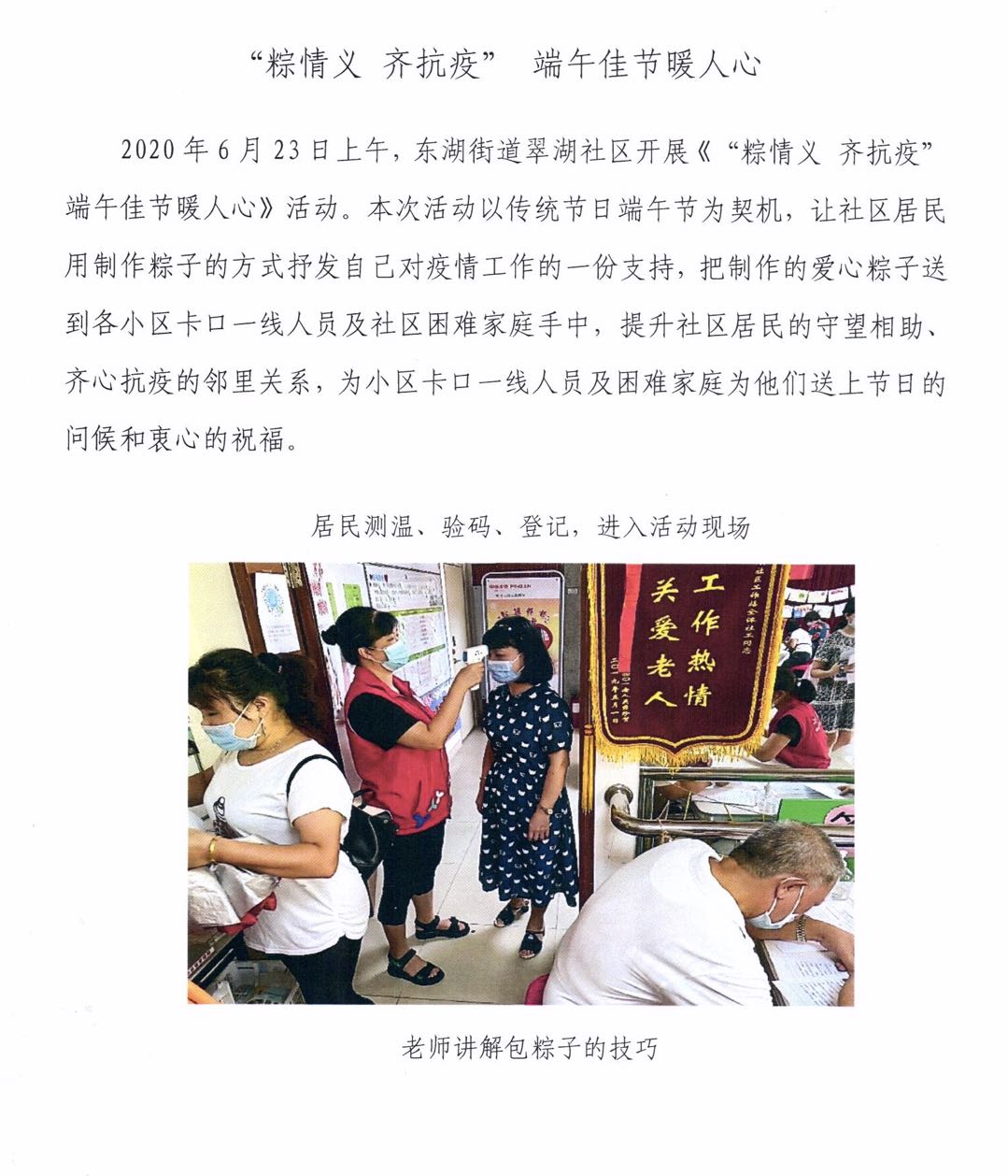 东湖街道翠湖社区民生微实事--粽情义 齐抗疫 端午佳节暖人心活动通讯稿