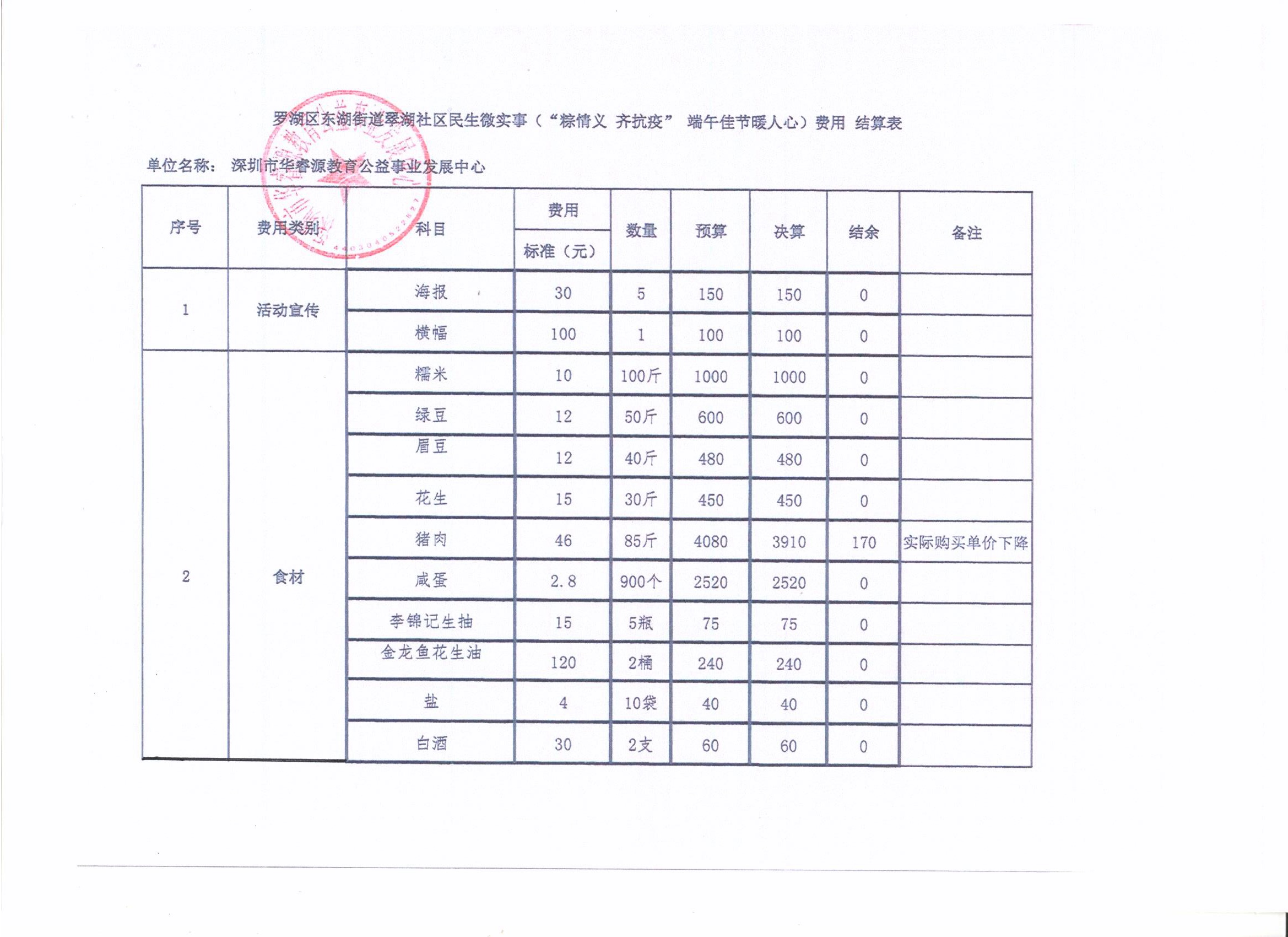 东湖街道翠湖社区民生微实事--粽情义 齐抗疫 端午佳节暖人心决算表公示