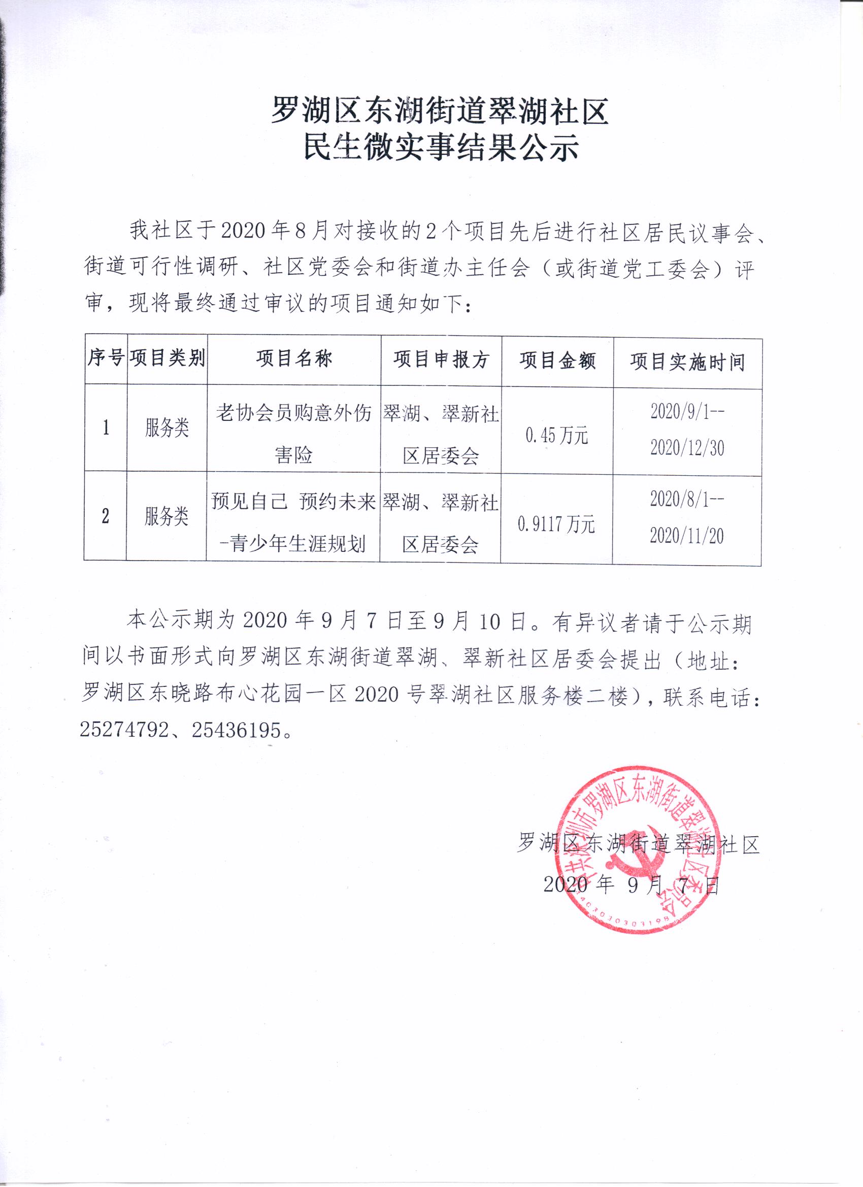 罗湖区东湖街道翠湖社区民生微实事结果公示