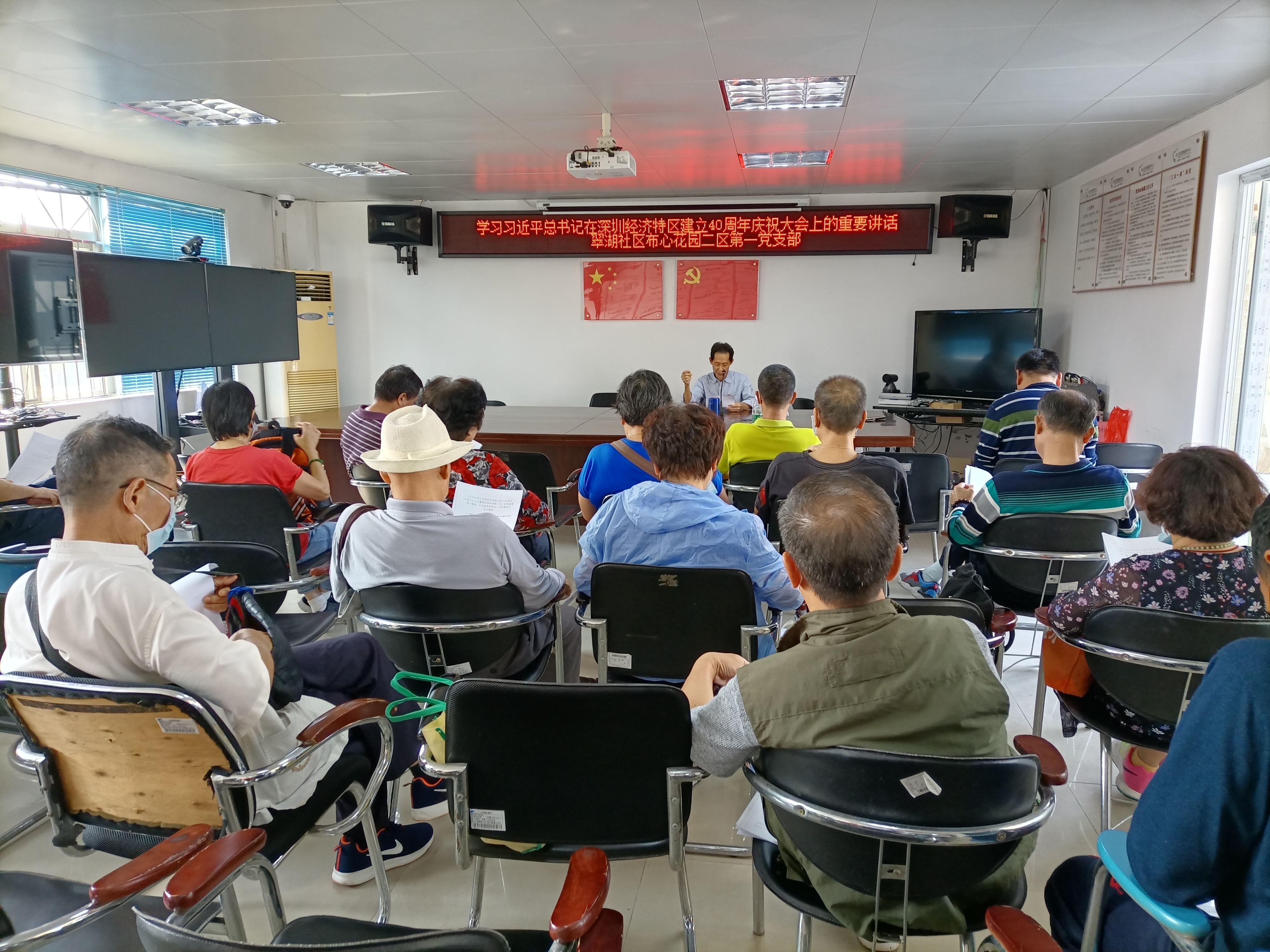 翠湖社区布心花园二区第一党支部学习习近平总书记在深圳经济特区建立40周年庆祝大会上的重要讲话