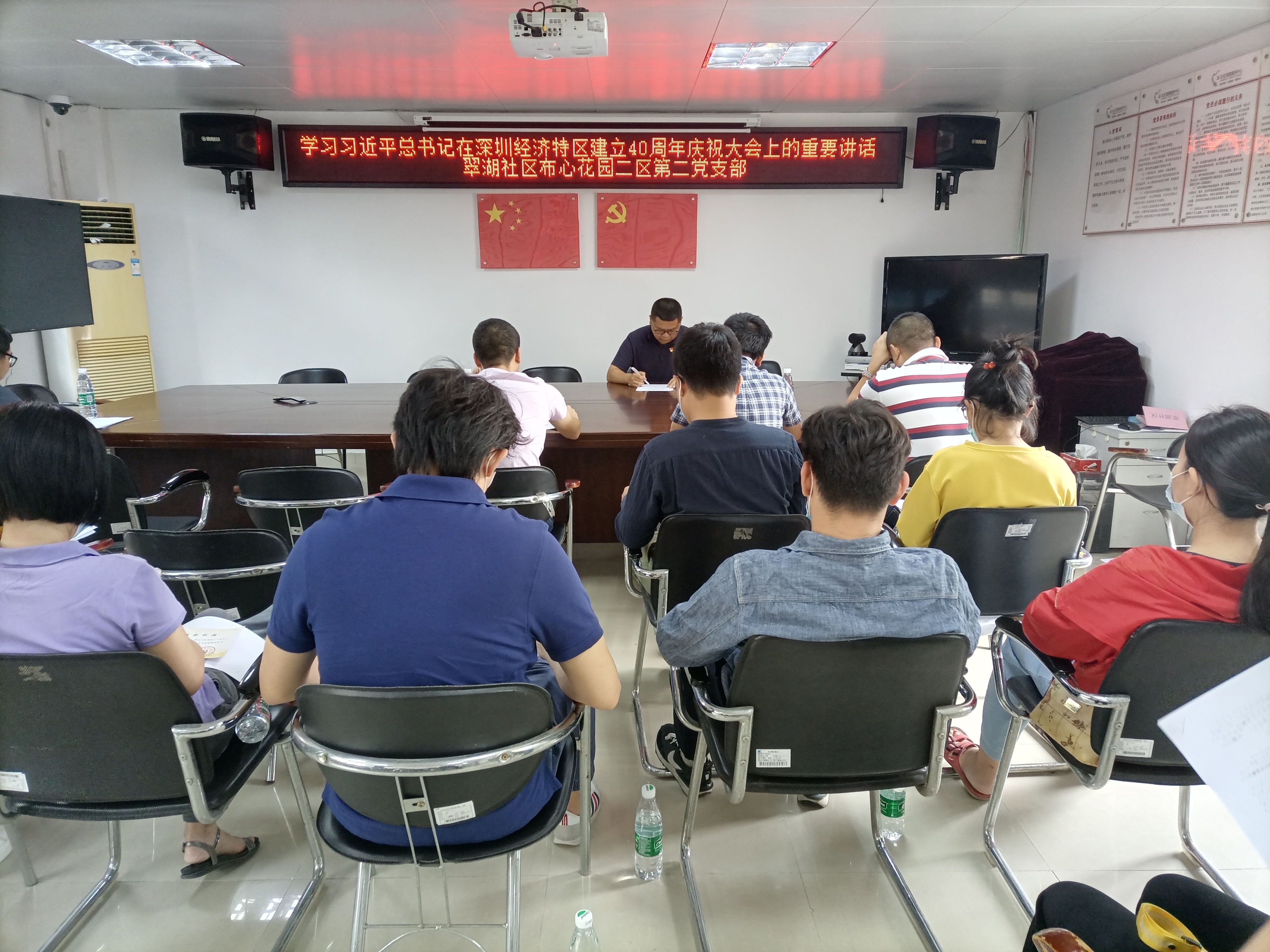 翠湖社区布心花园二区第二党支部学习习近平总书记在深圳经济特区建立40周年庆祝大会上的重要讲话