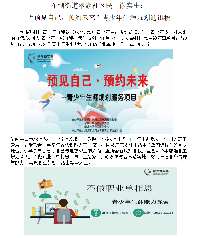 东湖街道翠湖社区民生微实事:“预见自己,预约未来”青少年生涯规划通讯稿