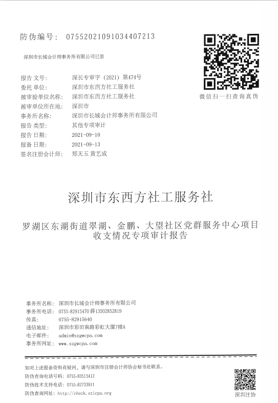 罗湖区东湖街道翠湖、金鹏、大望社区党群服务中心项目收支情况的专项审计报告公标