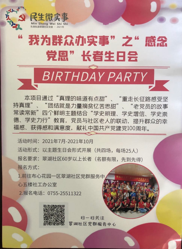 民生微实事项目”我为群众办实事”之“感念党恩”长者生日会第四场