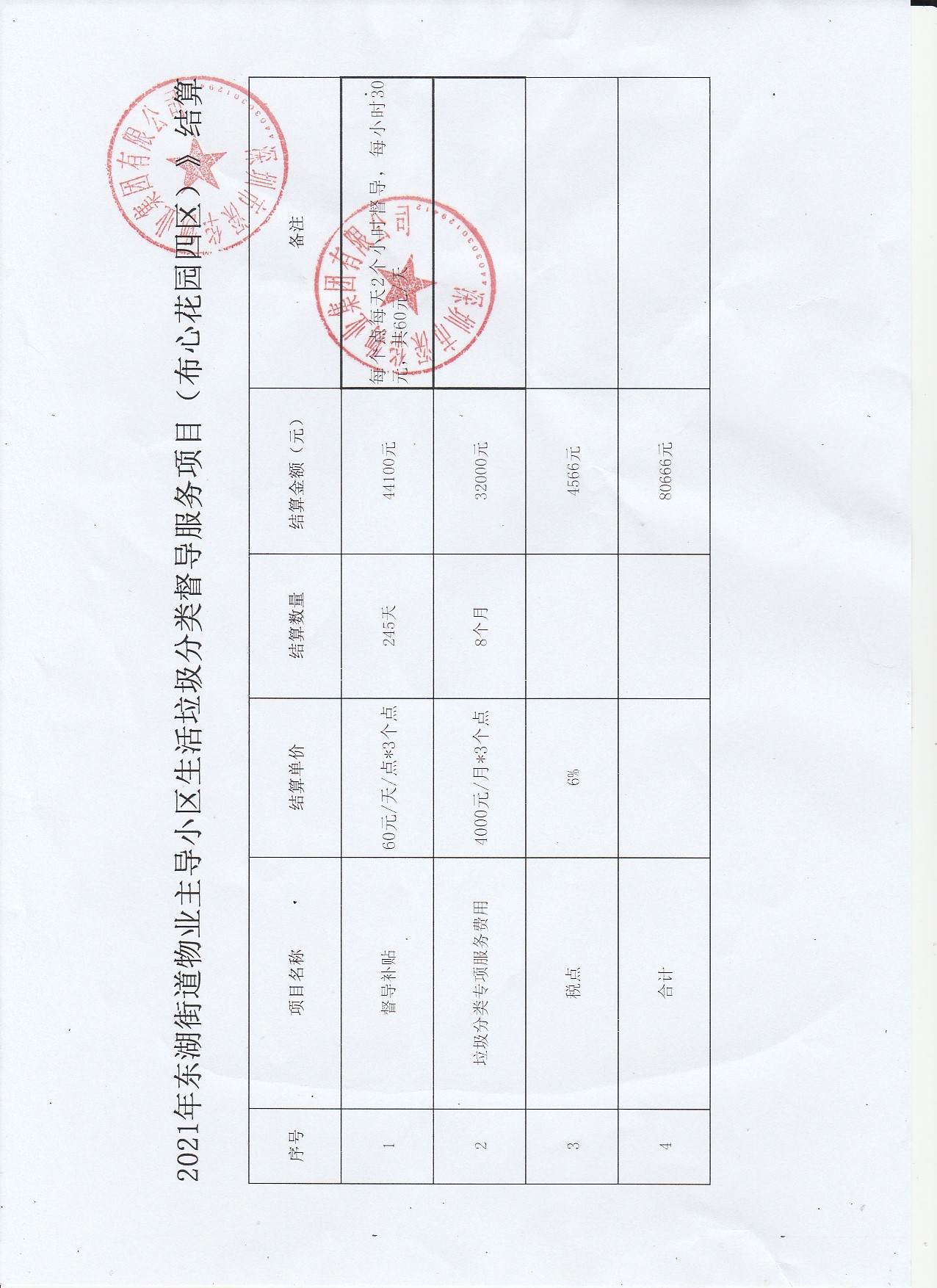 2021年东湖街道物业主导小区生活垃圾分类督导服务项目(布心花园四区)结算表公示