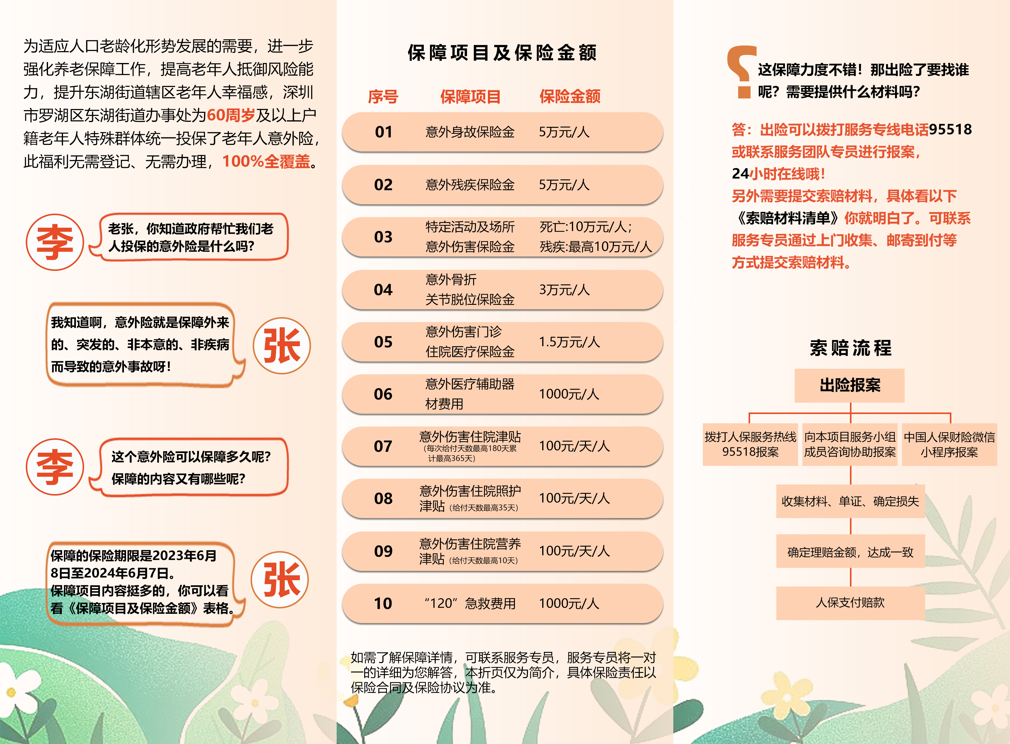 [社区公告]2023-2024年度深圳市罗湖区东湖街道年满60周岁及以上户籍老人意外保险服务