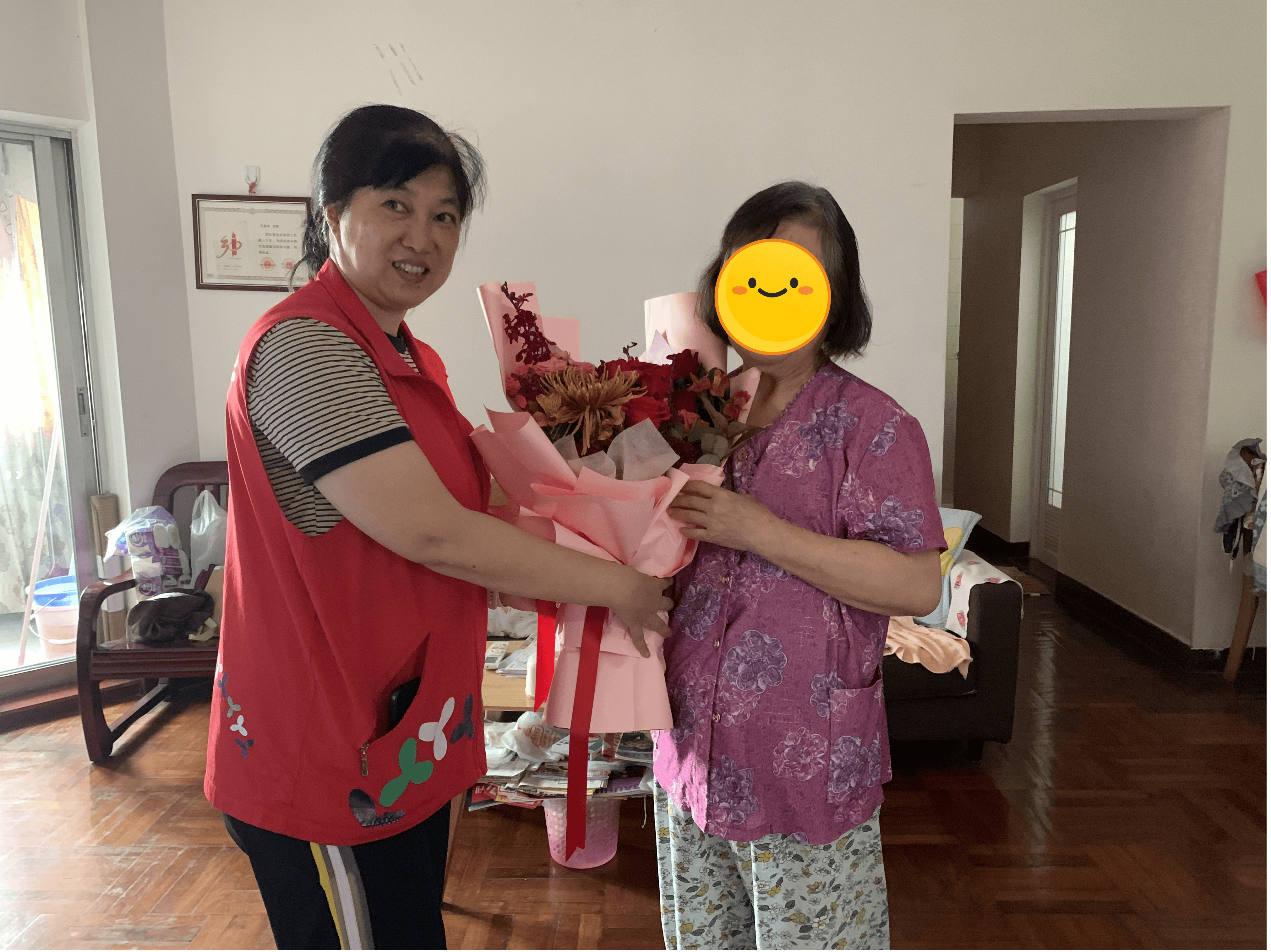 被探访对象对工作人员的到来表示感激,肢体残疾的李阿姨高兴地表示:“谢谢,花很漂亮,你们辛苦了”,独居吴阿姨表示:“鲜花我很喜欢,但更感动的是有人愿意听我们说话。”