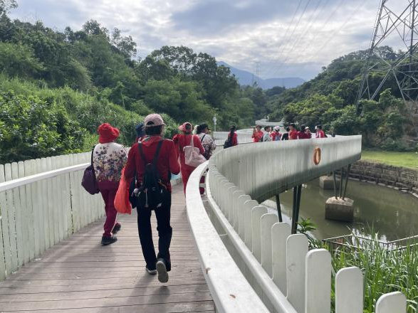 抵达后,长者们沿着清幽的绿道悠然漫步,沐浴在秋日的暖阳下,一路上,社工全程陪伴,一边引导队伍有序前行,一边与长者们亲切交流,欣赏着沿途的湖光山色。她们时而驻足拍照,记录美好瞬间;时而闲话家常,分享生活趣事。途中,几位热心的长者还拿出了自家制作的点心零食与大家分享、绿道上,欢声笑语,其乐融融,这不仅是一次户外行走,更是一场邻里情感的温暖交融。