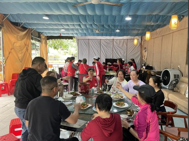随后,队伍前往大望六亩地农家乐共进午餐。席间,丰盛的农家菜肴让大家赞不绝口。餐后,卡拉OK环节将活动推向高潮,在社工的鼓励和带动下,长者们纷纷一展歌喉,用一首首经典老歌追忆往昔岁月,现场气氛温馨而热烈。