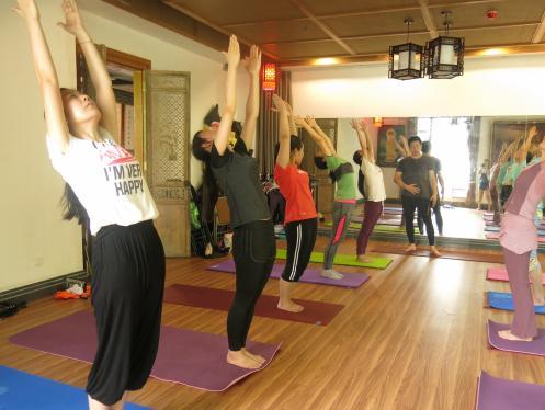在这两个月的学习中,居民们体验到了:三瑜伽、哈他瑜伽、拜月瑜伽、双人瑜伽和业瑜伽等不同种类的瑜伽课程。每节课程开始之前,老师都会带着居民们进行简易坐姿的深呼吸,将两手快速搓热用于对眼睛、脸部、头部和腰部的按摩,以三声唱诵开始进入正式的瑜伽学习。最后老师都会通过带领居民们进行瑜伽平躺休息式放松来结束大家每次的辛苦付出。
