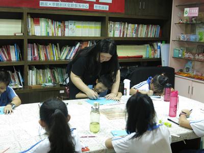 社工“身兼数职”,在孩子们绘画遇到困难时,予以指导;在孩子们说话没有掌握好尺度时,循循善诱;在孩子们玩闹得太过“疯狂”时,化身“凶恶的魔鬼”一脸“浩然正气”镇住一群小捣蛋鬼!