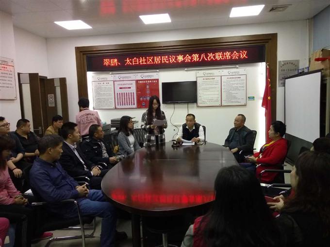 2017年12月28日下午,翠鹏、太白居委会在翠鹏社区工作站召开第八次居民议事会,会议由翠鹏社区工作站党委书记兼站长邬国超主持。按民生微实事服务类项目要求,按议事规则,召开表决社区组织“爱洒冬季”亲子游活动项目。该活动项目由健景社工服务中心社工介绍项目的具体情况,包括项目的目标,具体实施过程,活动的宣传及招募,活动的经费等,让居民议事会所有成员清楚了解该项目。最后由翠鹏、太白居民议事会成员共同商讨,一致通过此次活动计划。
