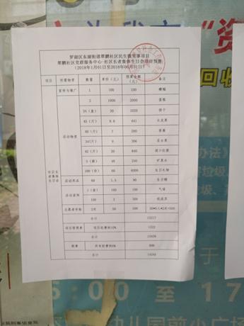 翠鹏社区民生微实事项目翠鹏社区党群服务中心社区长者集体生日会项目预算
