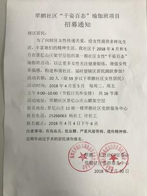 翠鹏社区“千姿百态”瑜伽班招募通知