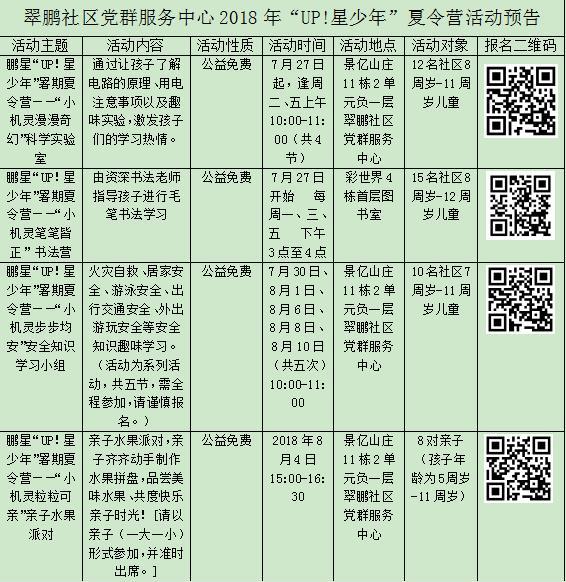 翠鹏社区党群服务中心2018年“UP!星少年”夏令营活动预告