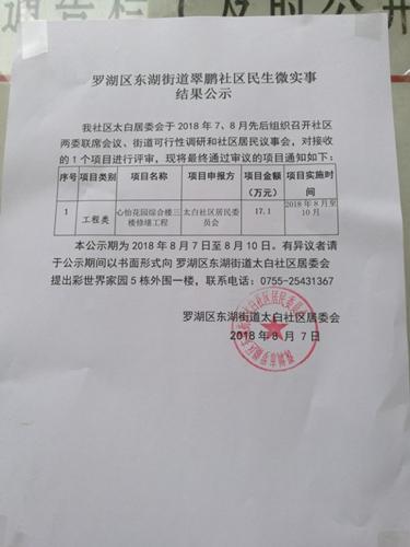 罗湖区东湖街道翠鹏社区民生微实事结果公示
