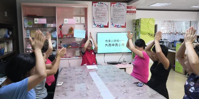 活动一开始,社工向组员介绍小组的目的和内容,为了活跃现场气氛,组员们一起进行热身小游戏之雨点变奏曲。