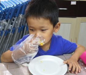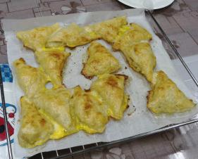 很快两个烤盘都放满了制作好的芒果酥,烤制完成后大家一起分享美食,小朋友们也吃的很开心呢!