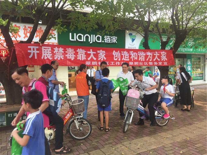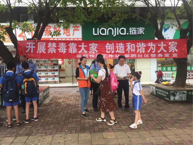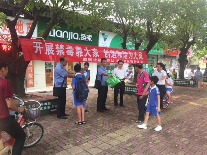 为了加强辖区内居民对毒品的认识,进一步有效提升居民们识别、防范、抵制毒品尤其是合成毒品的意识和能力,东湖街道翠鹏社区的禁毒工作人员于2018年9月4日来到人流密集的东湖路上开展了一场“开展禁毒靠大家创建和谐为大家”的禁毒宣传活动。