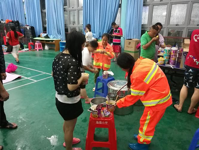 截止9月17日,翠鹏社区东晓小学避险点共安置避险人员113人,其中包括建筑施工人员、城市清洁工以及临时避险人员,工作人员们准备了充足的应急物资帮助他们度过了台风天气。