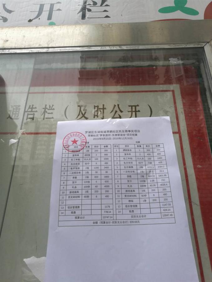罗湖区东湖街道翠鹏社区民生微实事翠鹏社区“梦享派对,长者联谊会”项目结算