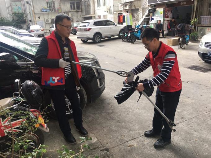 在分配好卫生及任务后,开始了大清扫行动。大家个个精神抖擞,大力清扫辖区内卫生盲点死角,铲除小广告,捡拾绿化带内的烟蒂及白色垃圾,搬运乱堆放杂物,清理阻碍路面的共享单车。