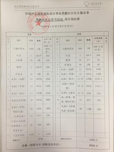 罗湖区东湖街道街道办事处翠鹏社区民生微实事翠鹏社区元宵节活动项目预结算公示