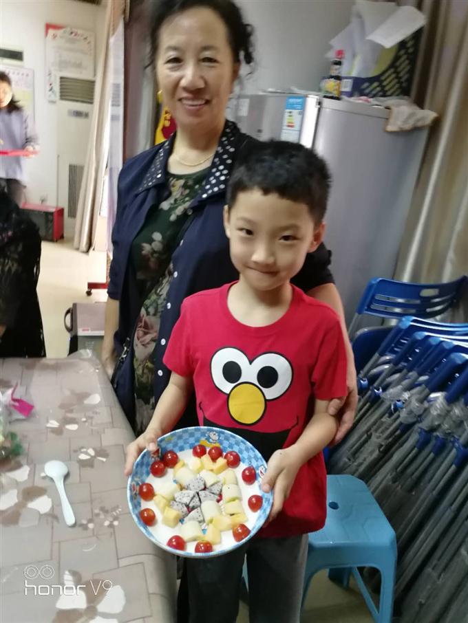 此次活动邀请了对养生颇有研究的营养师王东娜老师,社工首先对活动做了简单的介绍以及注意事项,王老师首先向大家介绍了一日三餐的营养吃法,怎样均衡一天的健康饮食,对鸡胸肉的认识以及营养价值。社工以家庭为单位分配好工具和食材后,在先“听”后“做”的前提下,家长和孩子们跟随老师的讲解步骤进行操作,在妈妈们的帮助下,孩子们兴奋的在属于自己的小领域里各显神通。由于鸡米花经过烘烤会产生一定的热量,在烘烤等待的过程中,王老师给妈妈和孩子们普及了水果沙拉的做法,已达到湿热降温、营养互补的功效。大家齐心把各种水果分块切好,在社工准备好的小餐盘里做出形状各异的水果沙拉,一盘盘美味可口的水果沙拉做成了,配上新鲜出炉金黄香脆的鸡米花,简直是人间美味呀。