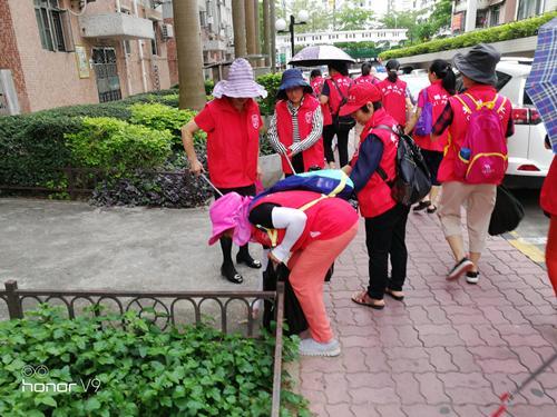 此次活动共有38名义工参与进来,在分配好工具后,热情高涨的义工们分成两组,一组向太白居小区、心怡花园方向,一组在景亿山庄小区内,向着各个卫生死角出击,开始了大清扫行动。虽然天气炎热,但大家的热情完全没有受到影响,穿着红马甲的义工们认真负责地捡拾路上、绿化带内的烟蒂及白色垃圾等,鲜艳的红色在社区内形成了一道亮眼的风景。