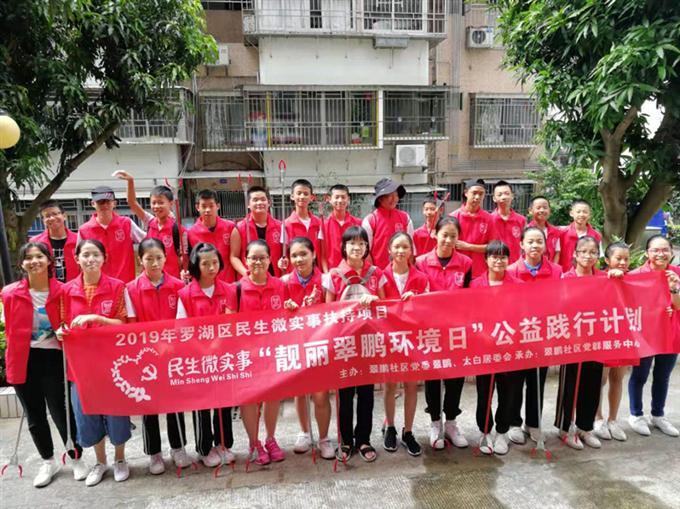 为提高社区环境质量,让居民有个更舒适干净的居住环境。6月22日上午,由翠鹏社区党委举办的民生微实事“靓丽翠鹏环境日”公益践行项目在社区内如期举行。这天,社区迎来一支特殊的志愿队伍,他们来自翠鹏社区的在校学生,大家利用周末休息时间,为共建社区美好家园奉献自己的一份力量,近50人参与了此次活动。