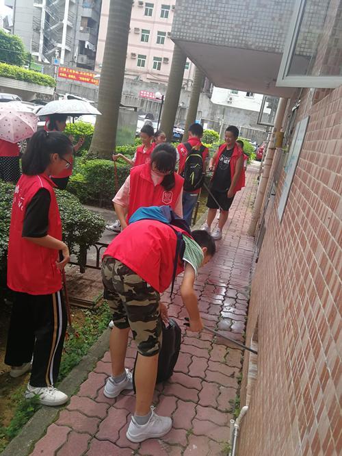 在社工的引导下,大家分成两组,有的拿夹子,有的手提垃圾袋,有的取扫把,浩浩荡荡的一路前行,向各个社区的各绿化带、卫生死角走去,进行全面大清洁行动。6月的天气非常的炎热,却抵挡不了同学们的热情,他们汗流浃背,挥动着手上的工具,藏在车底、绿化丛中的纸屑,塑胶袋,烟头成了他们的出击目标,他们不怕脏、不嫌累,认真的清捡着,红色的小马甲俨然成了最靓丽的风景线。