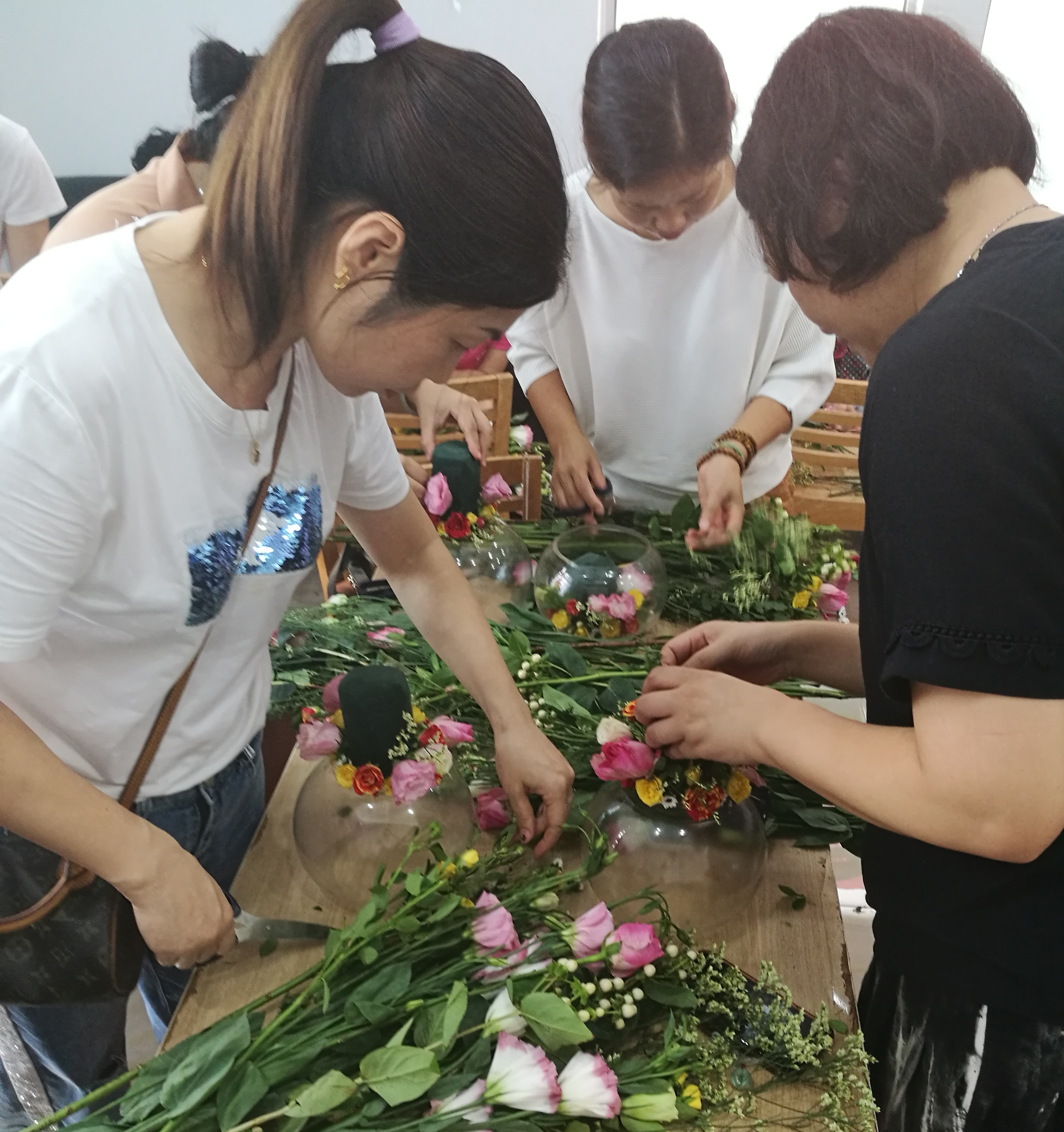 活动结尾,参与者表示:“插花很有意义,能够让我发现生活的美好”、“花很美,自己的心情都变美好了”、“很喜欢,感觉鲜花都有了生命,让我更懂得爱惜生命”......夕阳余光下,每位参与者手捧自己的插花作品,一副美丽的人花融合图跃然而出。