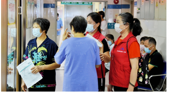 翠鹏老协志愿者为社区体检老人给与细心的关怀和贴心的服务