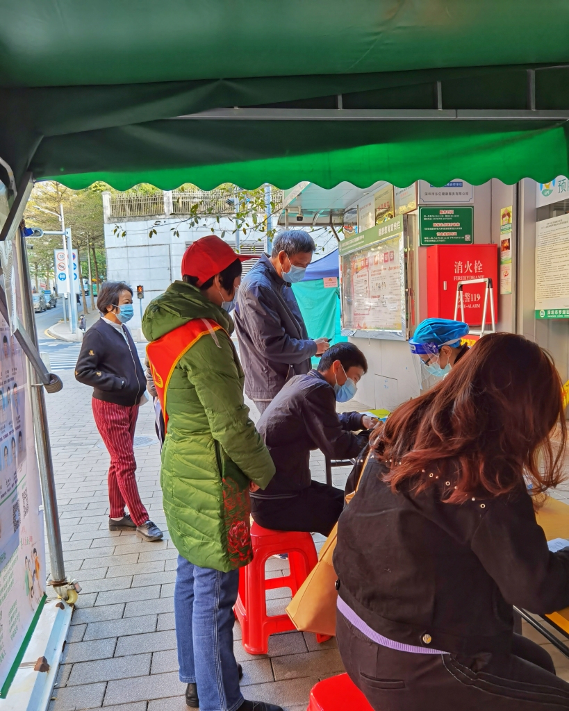 罗湖家园网讯:1月18日,翠鹏景亿一支部支部书记何绮玲,支委曾国珍,党员历雪芬,翠鹏社区志愿者周复英早上8点至12点,下午2点至5点30分来到了东晓社康中心协助注射疫苗,为缓解社康中心工作的压力,保证接种良好秩序,翠鹏景亿一支部三位老党员与一名志愿者四人分上下午两班身穿红马甲为疫苗接种提供贴心优质的服务。