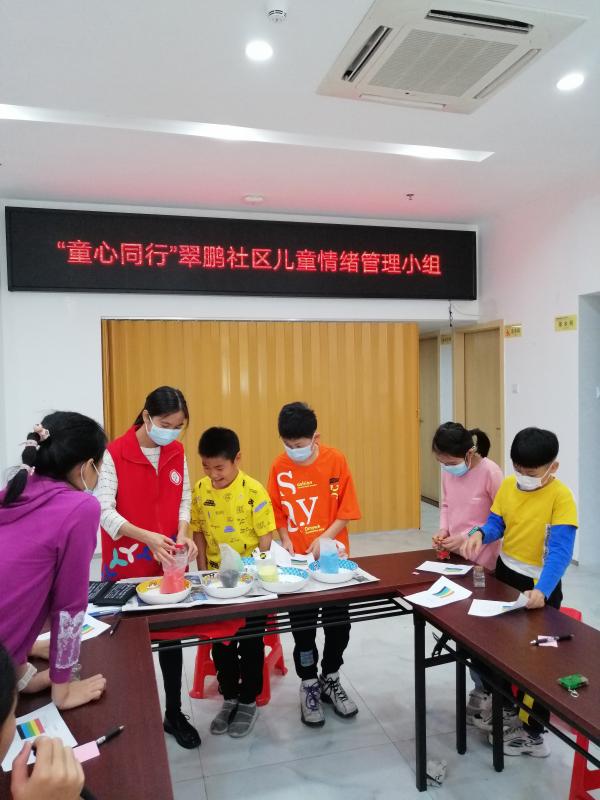 罗湖家园网讯:党史学习教育开展以来,翠鹏社区党委党史学习教育和为群众办实事结合起来,把学习成效转化为工作效力,引导翠鹏社区党群服务中心社工于4月10日上午开展儿童情绪管理小组,呵护未成年人心理健康。
