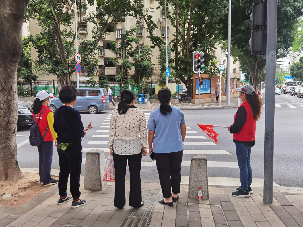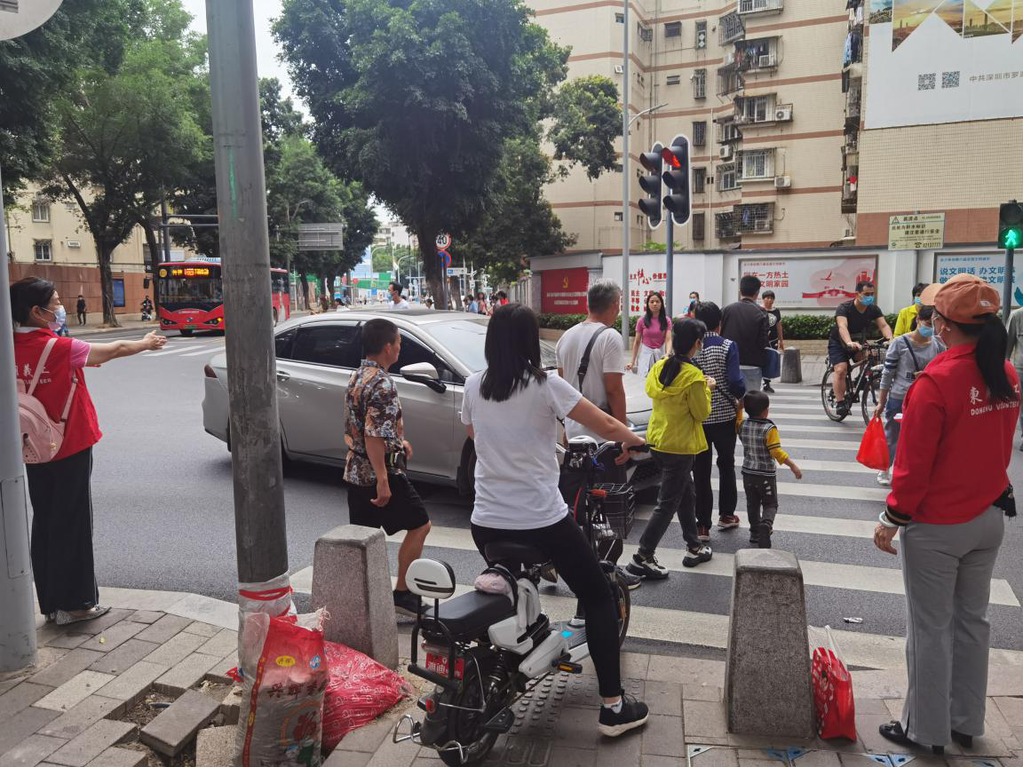 罗湖家园网讯:为进一步维护良好交通秩序,提升居民文明素质,倡导居民文明安全出行习惯,营造和谐文明交通环境。4月15日下午,翠鹏社区的志愿者来到彩世界十字路口,开展文明交通劝导志愿服务活动。