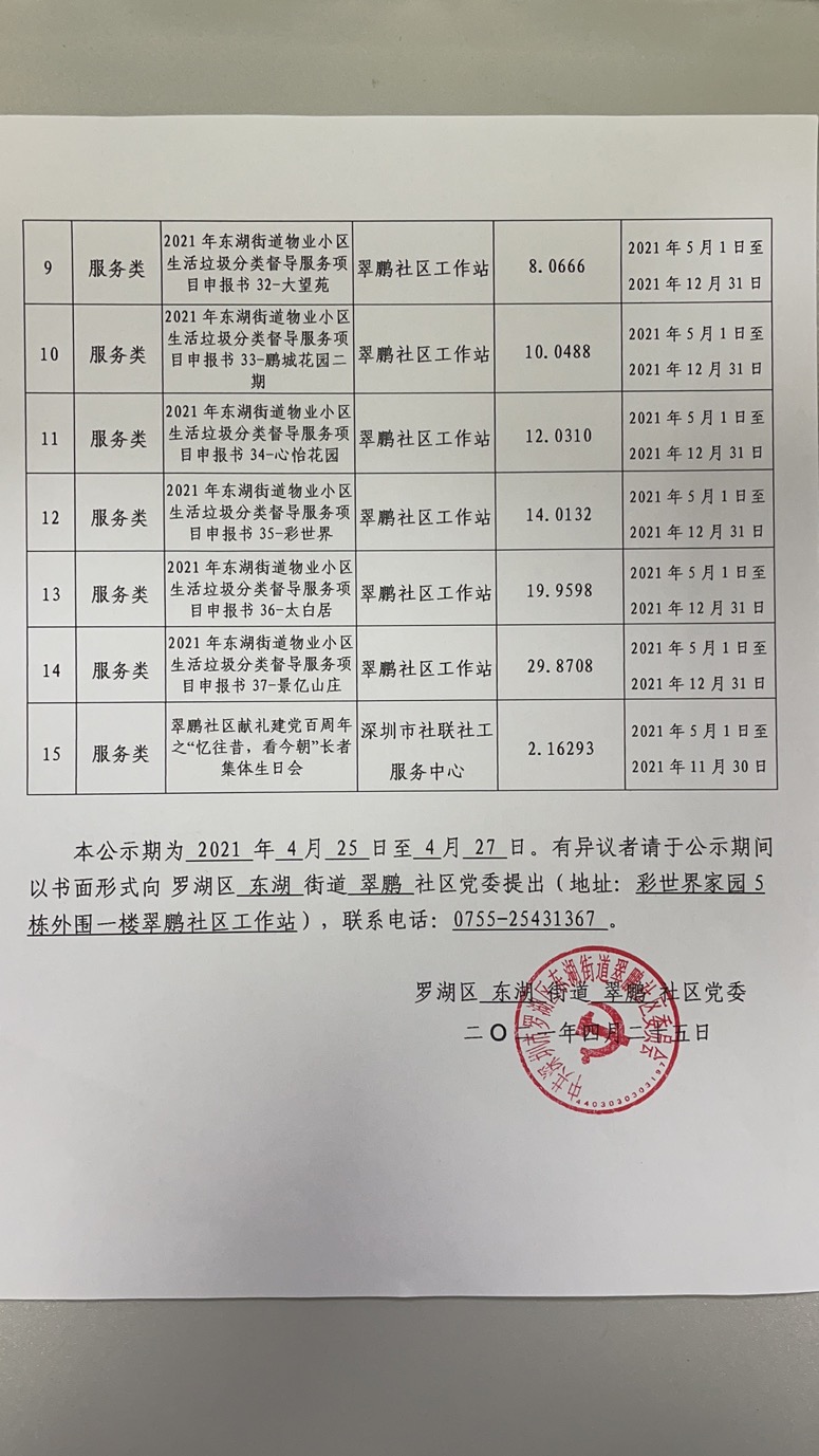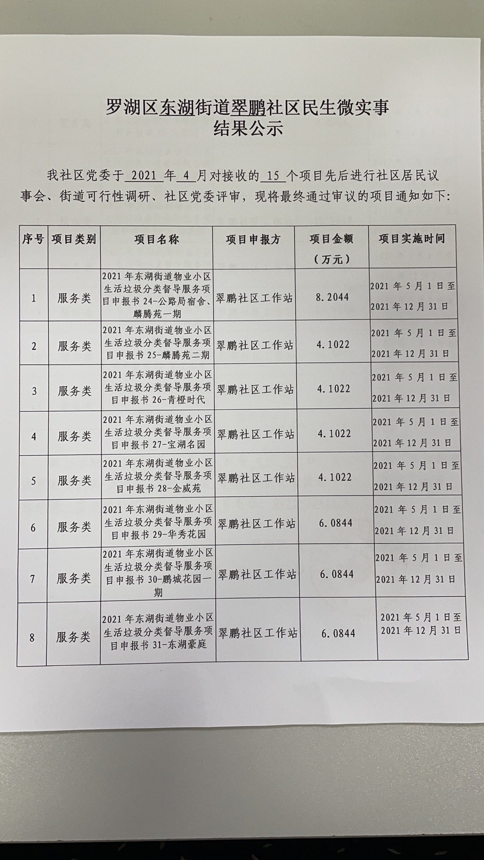 罗湖区东湖街道翠鹏社区民生微实事结果公示